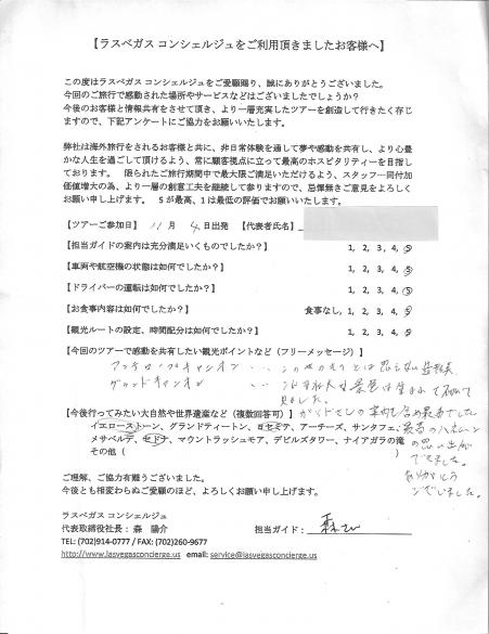冬の気配をひしひしと感じる中でしたが、大変良いツアーの評価をいただきましたので、ご満足いただけたものと安心しております。次回「またベガス行こうか?」となった時もぜひよろしくお願いします。そして、お疲れのところアンケートにご協力いただきましてありがとうございました。