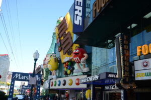 ラスベガスはストリップ沿いに縦長に建物が広がっていて、南をルクソール、北をフリモントとすると全長12㎞の距離があります。日本の国道1号線に例えると、皇居から西馬込駅までに等しい距離となります。この間に超巨大なテーマホテルが所狭しと立ち並んでいる訳です。